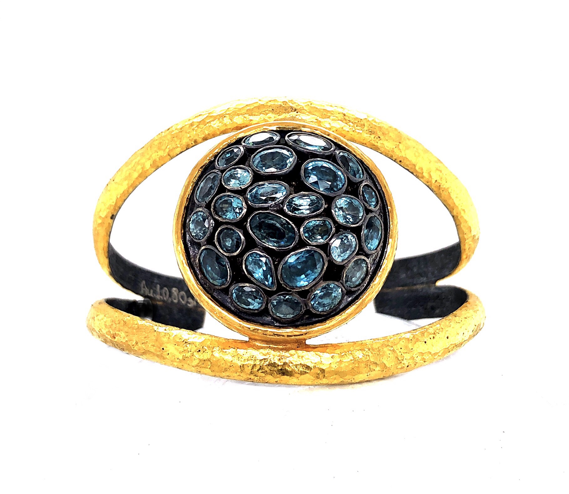 Category: Cuffs Tags: 24K Gold, Blue Topaz, Oxidized Silver