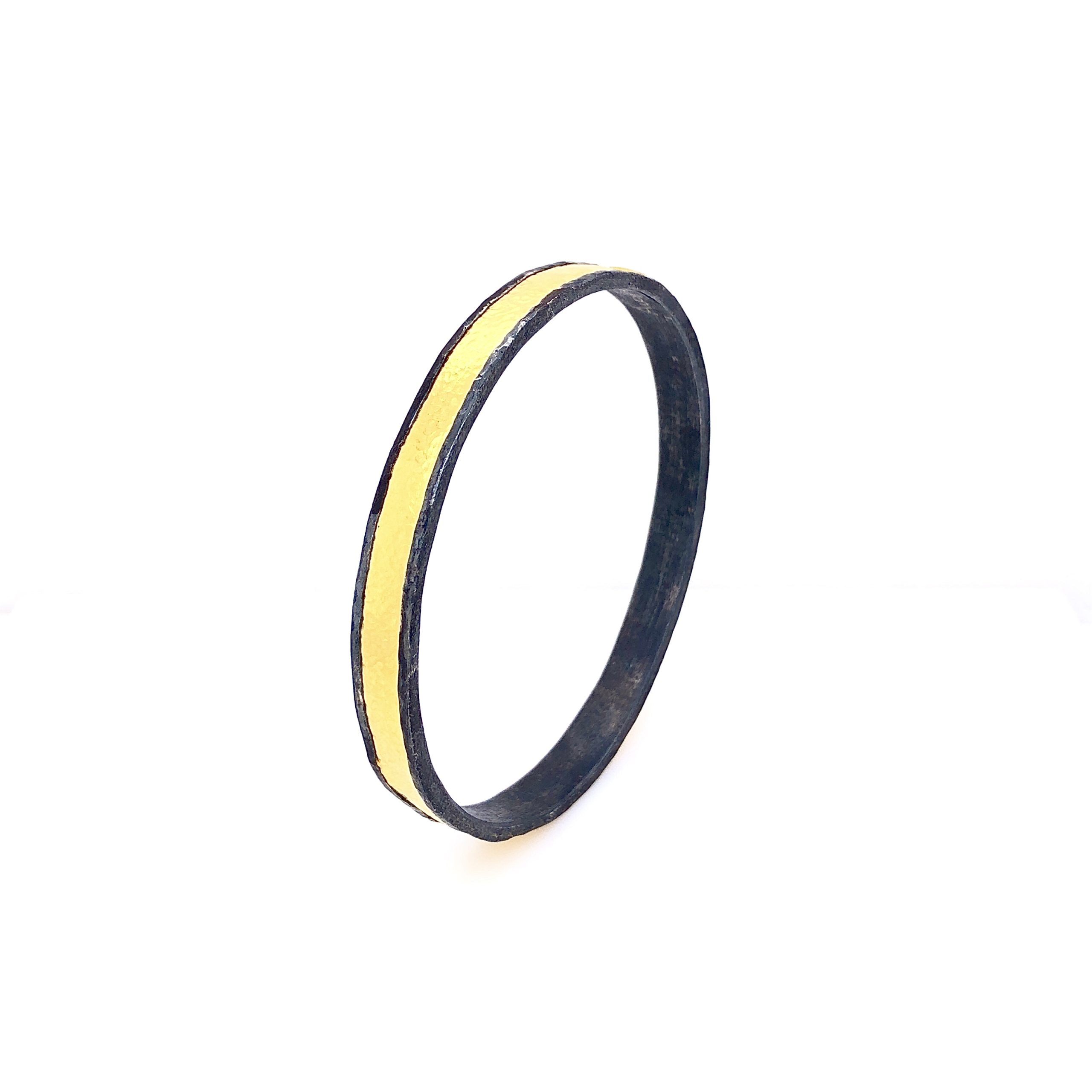 Gold Strip Layered on Oxidized Silver Bangle (B3961)