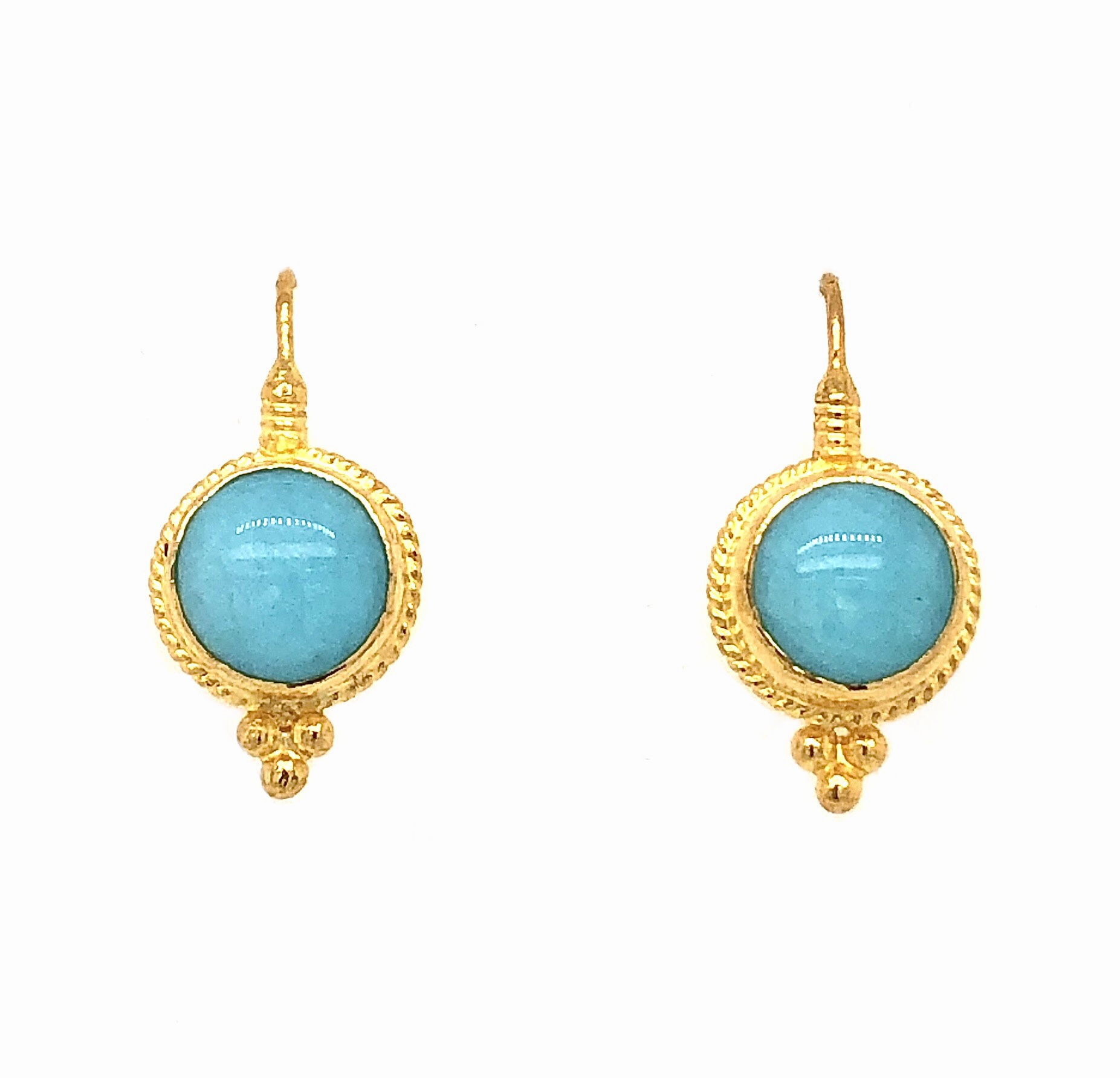 Amazonite Earrings French Hooks and Ancient Gold Detailing G: 4.40gr (E6634)