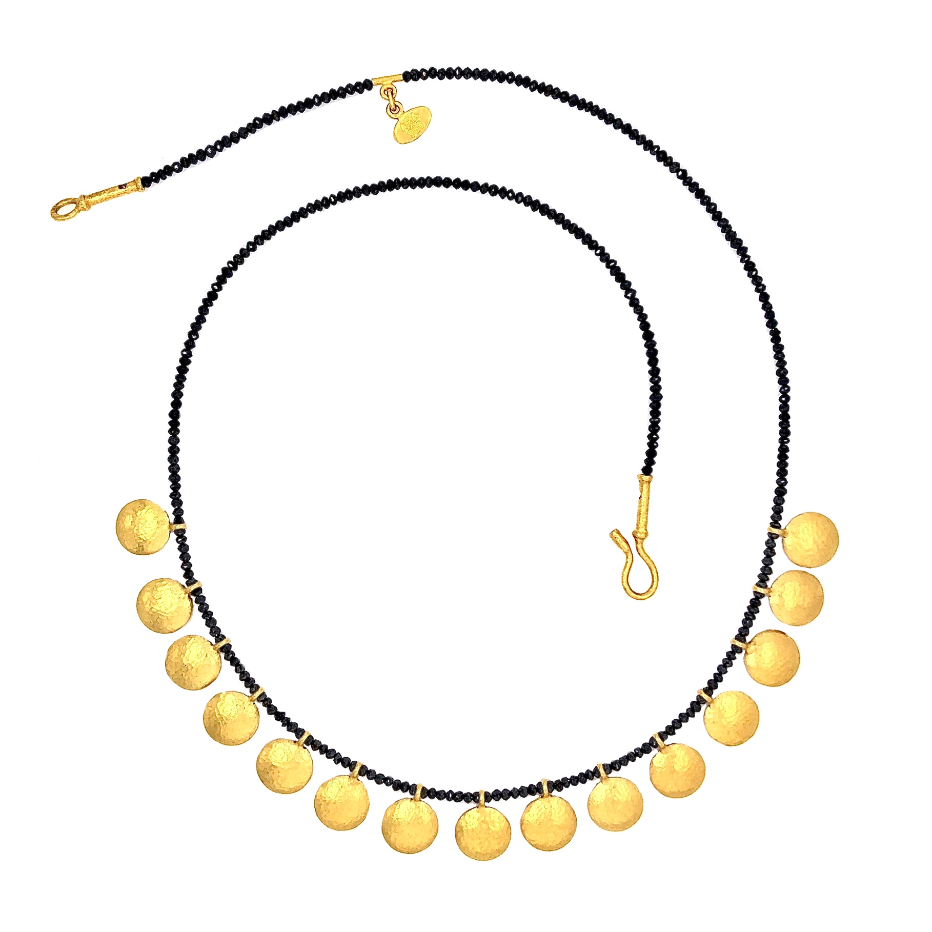 Beaded Black Diamond and Gold Disc Necklace (D1521)