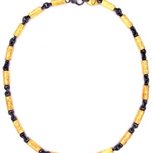 Large Link Gold and Diamond Imbedded Oxidized Silver Necklace